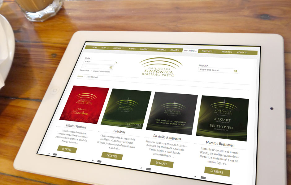 O site apresenta todos os CD’s gravados pela orquestra, com foto do álbum, ficha técnica e a possibilidade de adquirir estes produtos, através de pontos conquistados de acordo com as doações realizadas à Associação Musical, mantenedora da Orquestra Sinfônica.