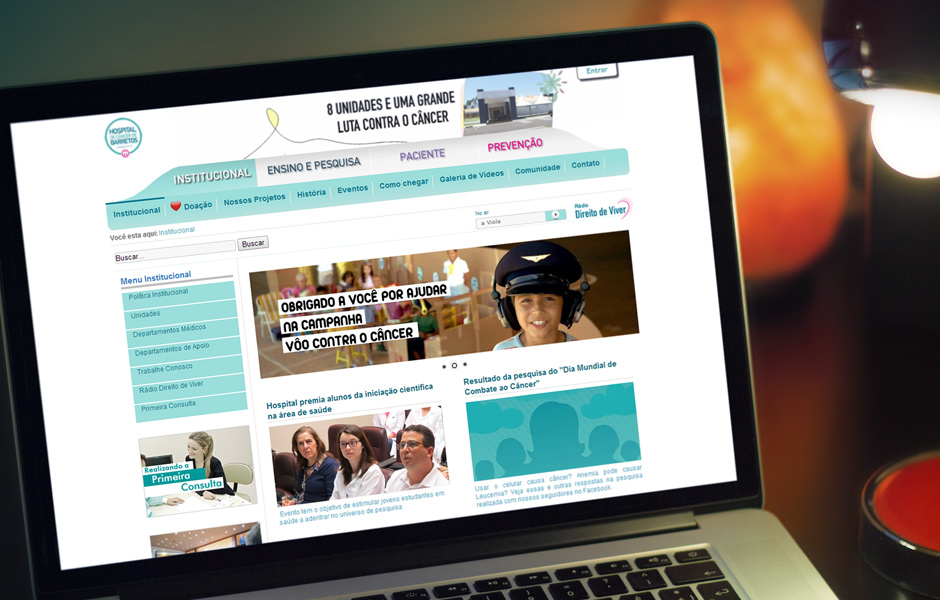 Nele, substituimos o site antigo do hospital, pela criação de um serviço informativo à pacientes, familiares e cuidadores de pessoas envolvidas com o Câncer.
